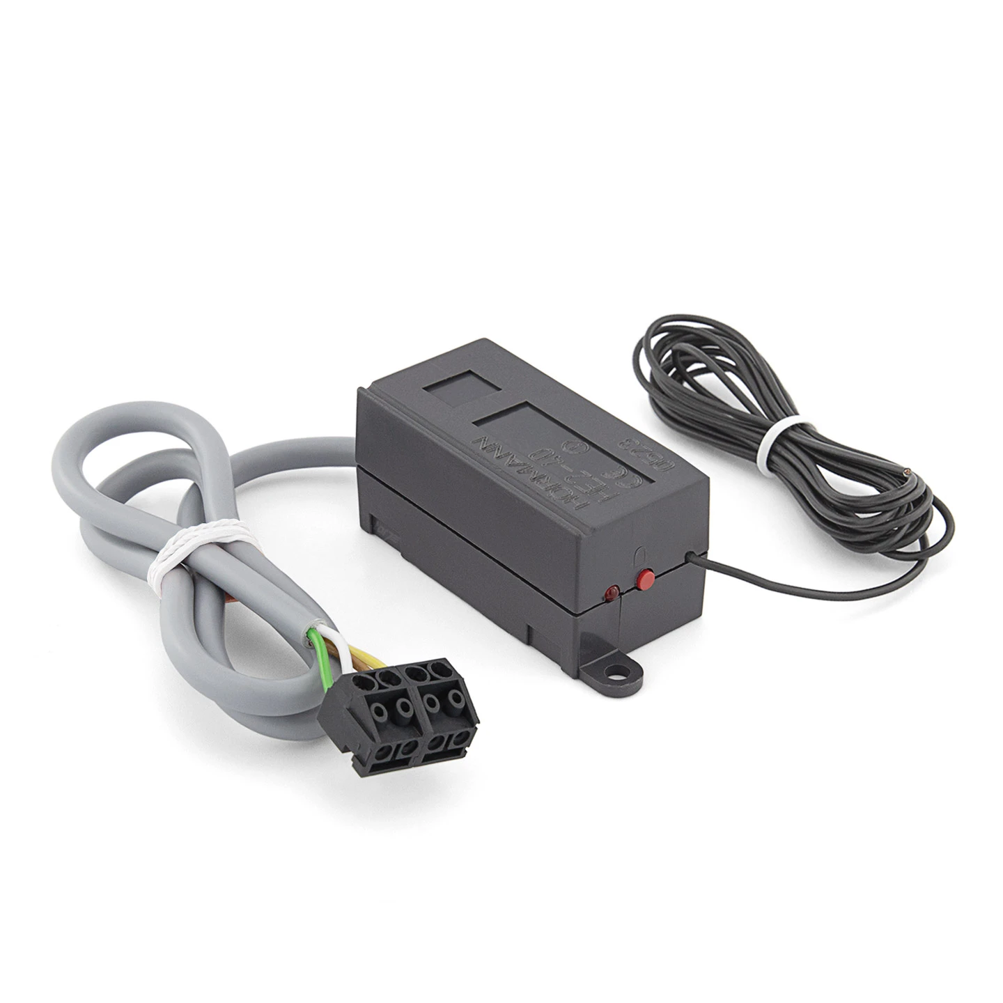 Der Hörmann Empfänger mit der Bezeichnung HE 2 ist ein spezieller 2-Kanal-Empfänger, welcher auf der Frequenz 40,685 Mhz empfängt. Er ist ausschließlich für Garagentorantriebe der Firma Hörmann geeignet. Dazu gehören der leistungsstarke Torantrieb ProMatic, der effiziente SupraMatic sowie der besonders preisgünstige EcoMatic. Der HE 2 besitzt ein widerstandsfähiges Kunststoff-Gehäuse, das ihn vollständig umschließt. Zusätzlich besitzt er eine 0,5 m lange und steckbare Anschlussleitung, die 3-adrig ist. Der Empfänger kann hierbei mit einer Funksteuerung anvisiert werden, aber auch optional durch einen Funk-Codetaster. Über Funkwellen wird das codierte Signal über eine spezielle Frequenz gesendet.