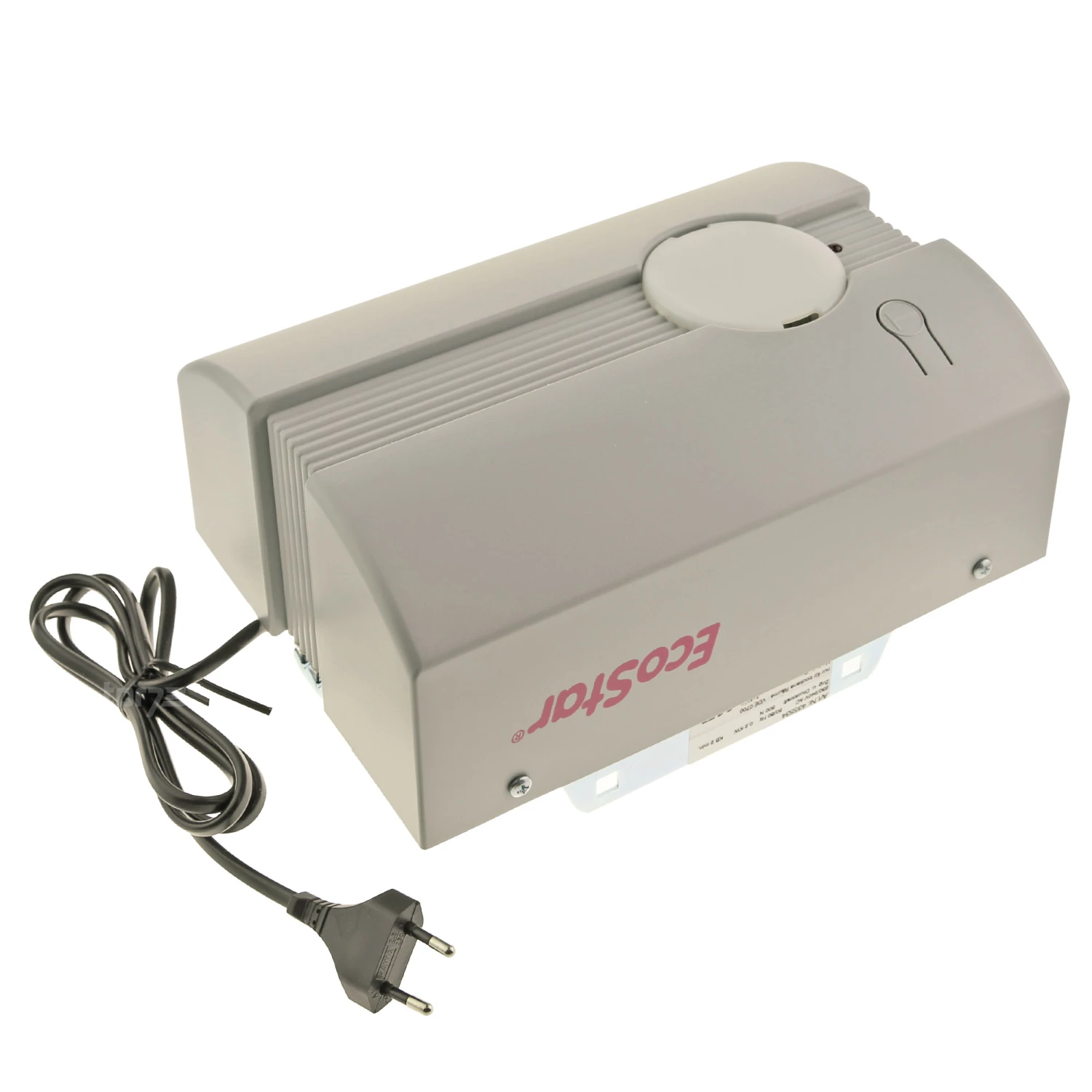 Der EcoStar C Garagentorantrieb arbeitet mit einer Zug- und Druckkraft von 500 N. Dabei erreicht der Torantrieb eine Öffnungsgeschwindigkeit von rund 10,5 cm pro Sekunde. Versorgt wird der Torantrieb mit einem Netzanschluss mit 230/240 V AC. Der Antrieb wiegt nur 10 Kilogramm und kann aus diesem Grund einfach eingebaut werden.