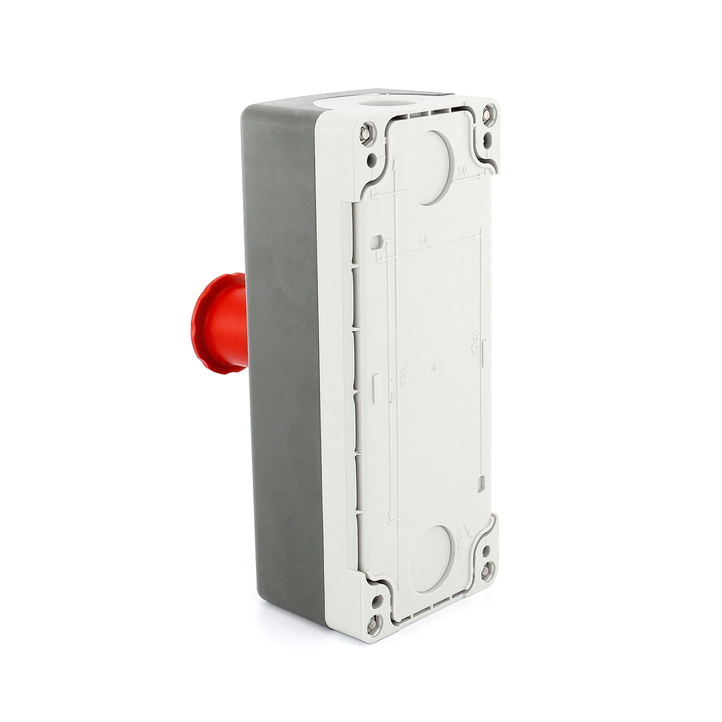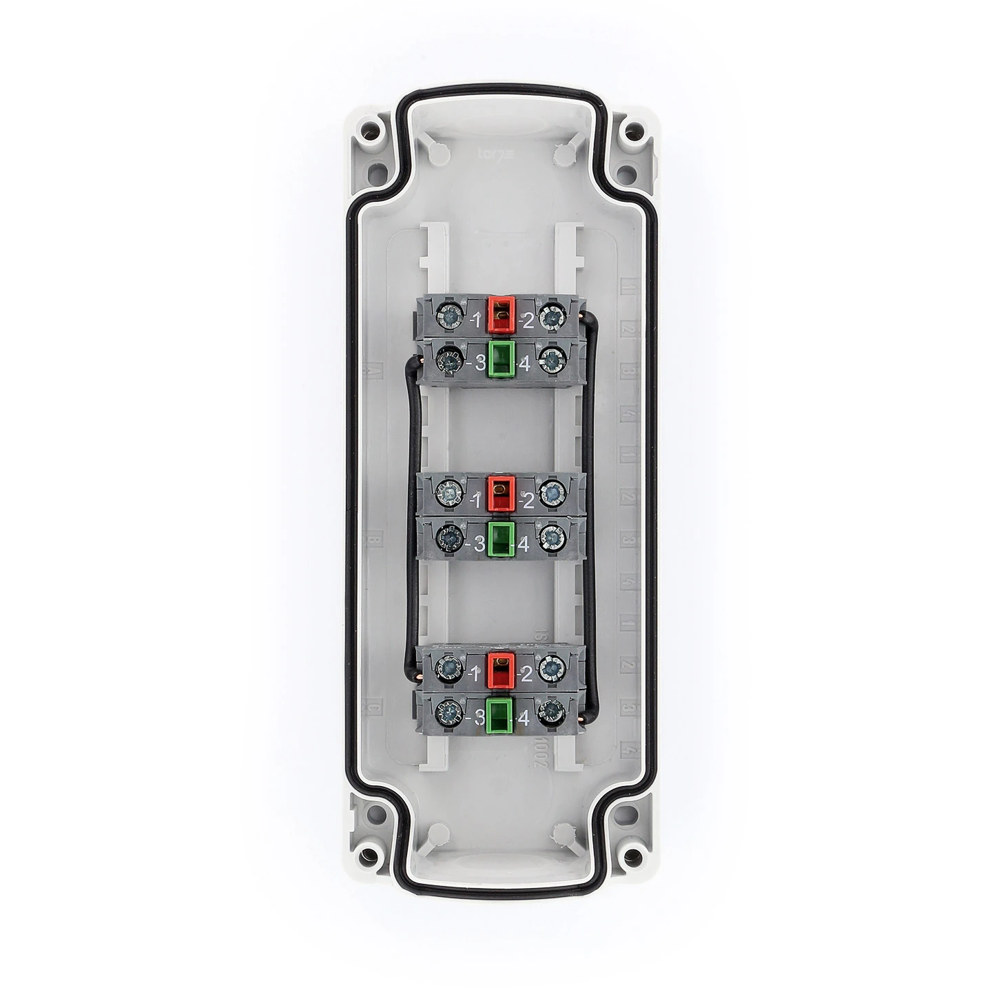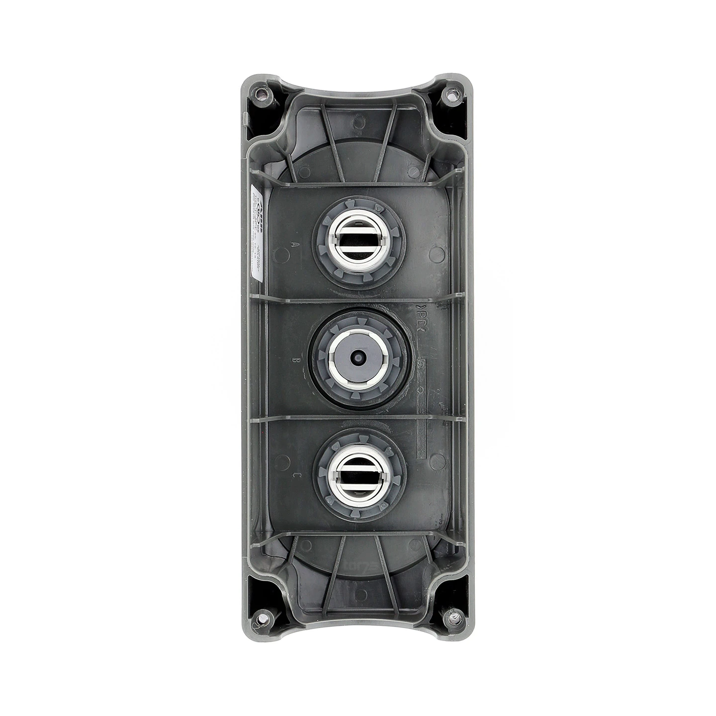 Der Hörmann Drucktaster DTNA 30 dient als zusätzliches Bedienelement für den Hörmann Schiebetorantrieb STA 400 und somit für industrielle Zufahrten. Ausgerüstet mit der Schutzklasse IP 65 ist der Taster staubdicht, bietet Schutz vor starkem Strahlwasser und kann somit problemlos im Außenbereich montiert werden. Die Bedienung erfolgt über die Tasten Auf und Zu. Die zusätzliche Bedientaste Halt ist rastend, d. h. bei Betätigung rastet der Taster ein und wird erst durch Ziehen wieder entsperrt. Erst dann kann der Taster wieder verwendet werden. Zum Schutz vor unbefugtem Zugriff ist der Drucktaster mit einem Miniaturschloss am Halttaster ausgestattet und wird mit 2 Schlüsseln geliefert. Alle verwendeten Materialien und Komponenten sind aus hochwertigen und langlebigen Materialien gefertigt und sorgen so für einen praxistauglichen, dauerhaften Einsatz.