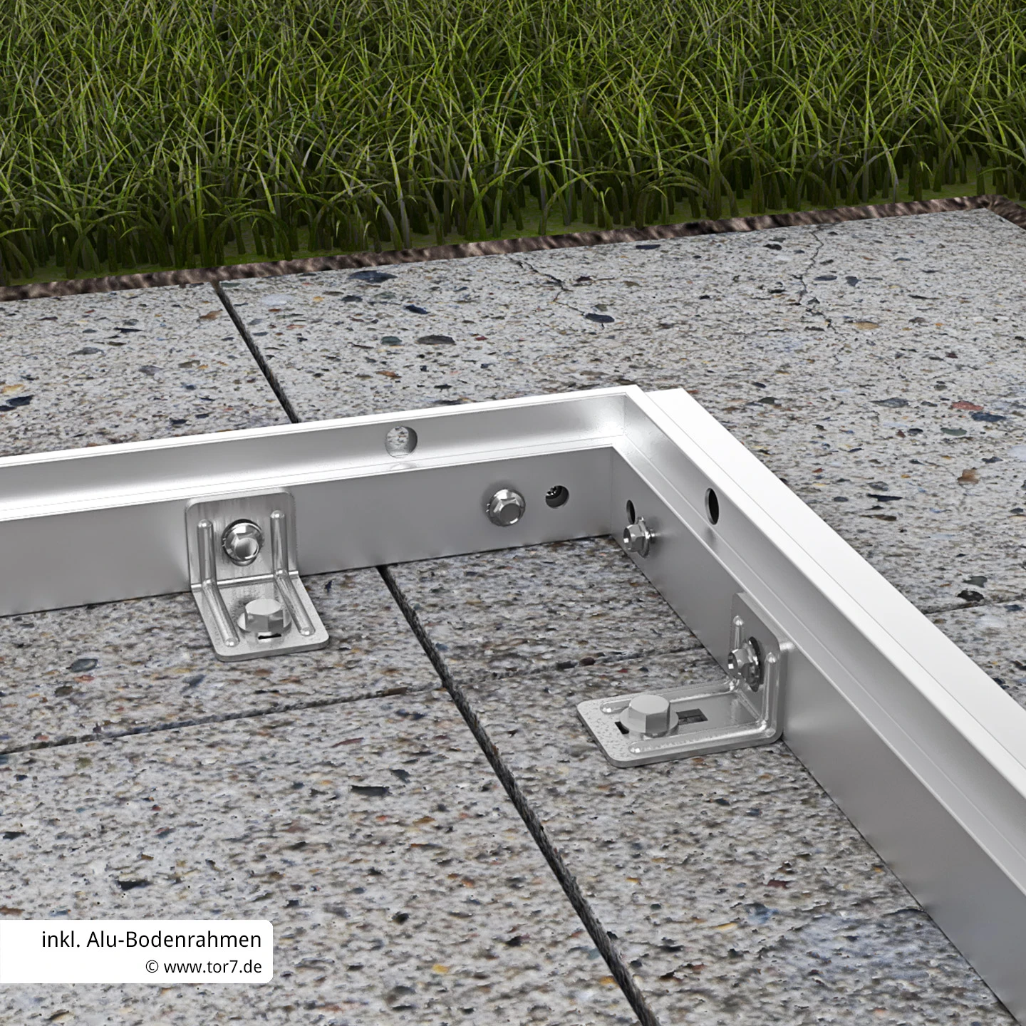 Für einen unkomplizierten und schnellen Aufbau sind die einzelnen Elemente bereits in hohem Maße vorgefertigt und können so zeitsparend montiert werden. Der Aluminium-Bodenrahmen ist bereits im Lieferumfang enthalten und verleiht der gesamten Konstruktion die notwendige Stabilität. Für die Montage liegt ein umfangreiches Werkzeug-Set bei, das den sofortigen Beginn mit der Endmontage ermöglicht. Verschließen lässt sich das Gerätehaus mit dem hochwertigen Schlosseinsatz mit Buntbartschlüssel. Bei Bedarf kann hier ein geeigneter Profilzylinder nachgerüstet werden.