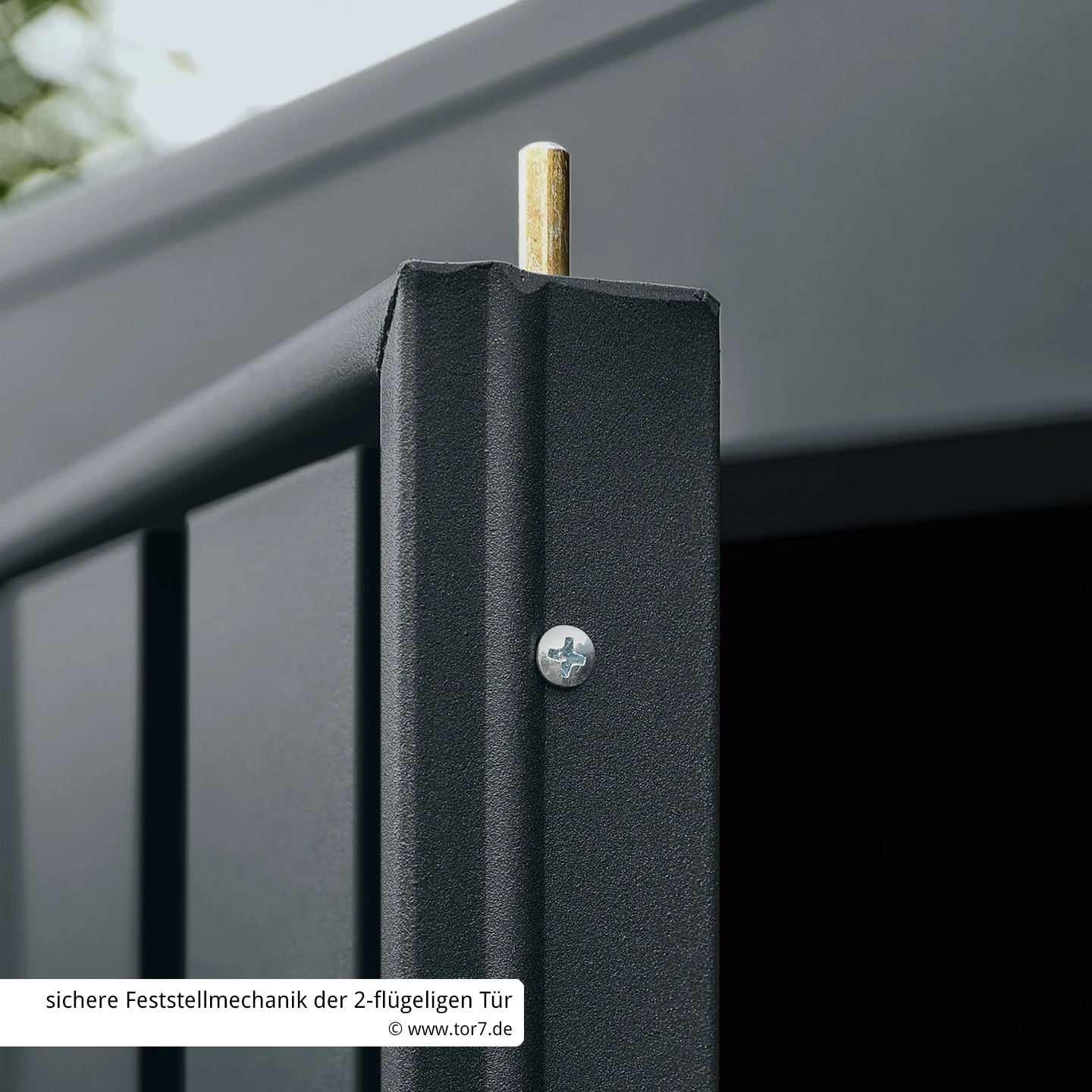 EcoStar Gerätehäuser bieten nicht nur bei den Farbtönen eine umfangreiche Auswahl. Auch die Türflügelanzahl kann je nach Bedarf ausgewählt werden. Die doppelflügelige Ausführung sorgt dabei für eine maximale Durchgangsbreite und noch mehr Begehkomfort mit sperrigen Gegenständen.