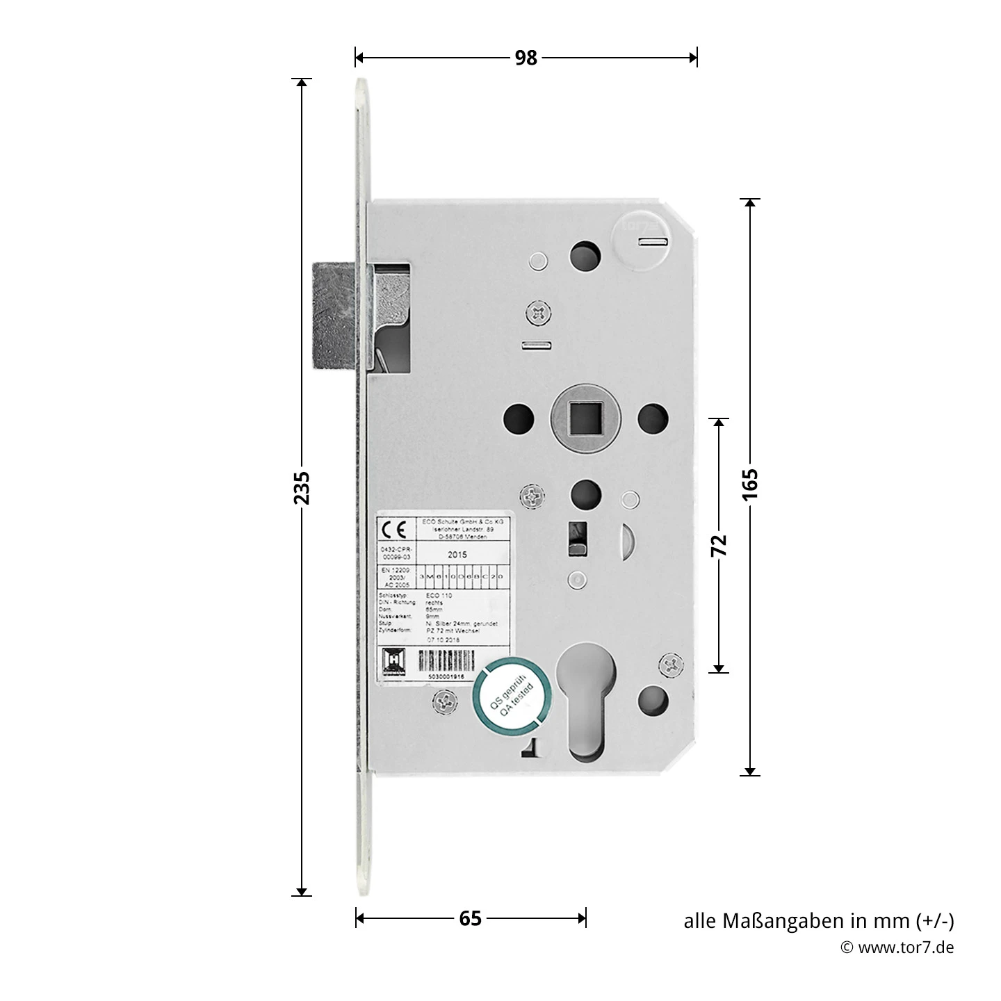Beschreibung zu Hörmann Einsteckschloss mit Wechsel PZ rechts, Dornmaß 65 mm