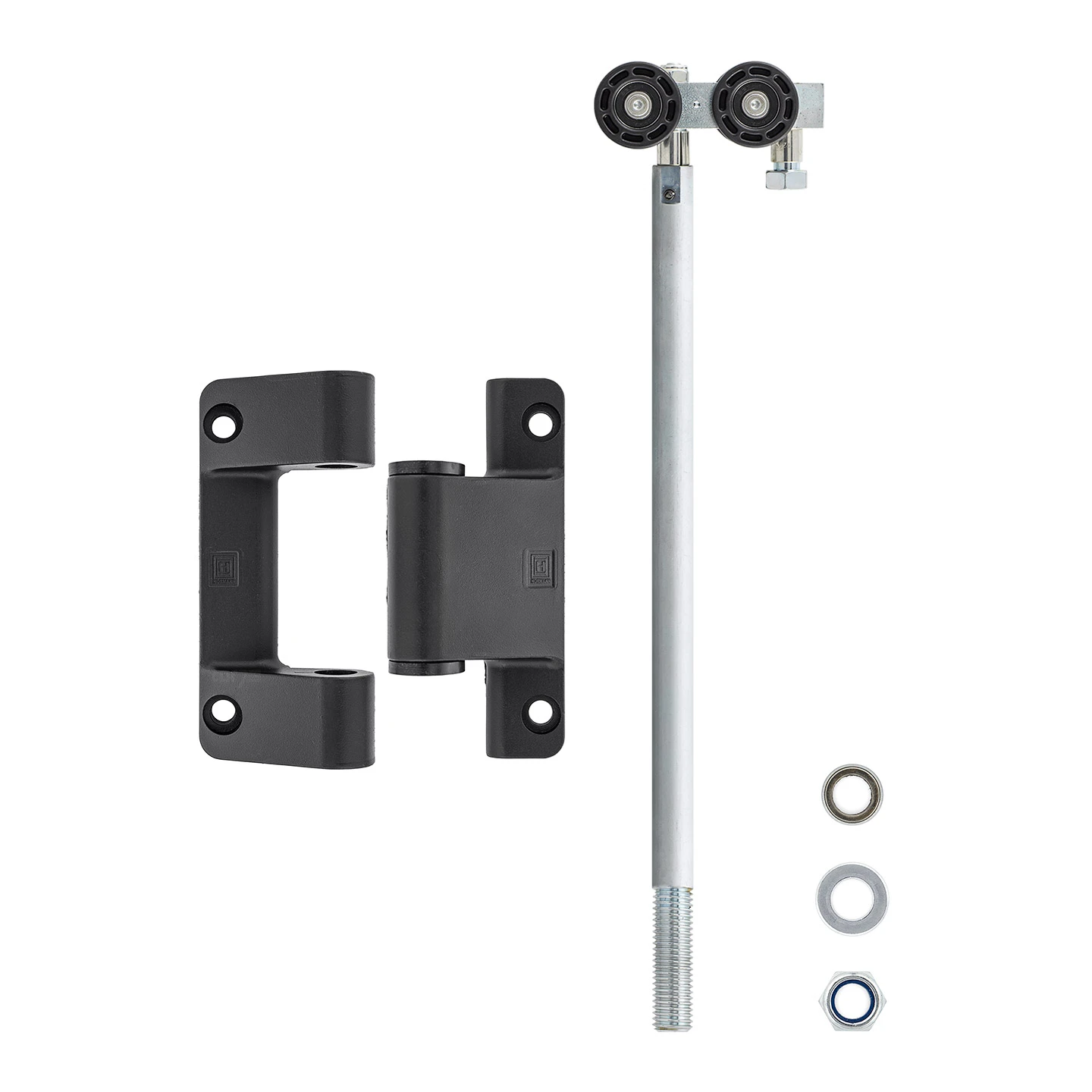 Hinweise: Die Hörmann Entlastungsrolle mit Doppel-Bandteil 400 mm, M12, DIN links, aufliegend ist mit den mitgelieferten Bandteilen nur für linke Torflügel geeignet. Geht es dagegen um einen rechts angeschlagenen Flügel, so gibt es dafür die Hörmann Entlastungsrolle mit Doppel-Bandteil 400 mm, M12, DIN rechts, aufliegend.