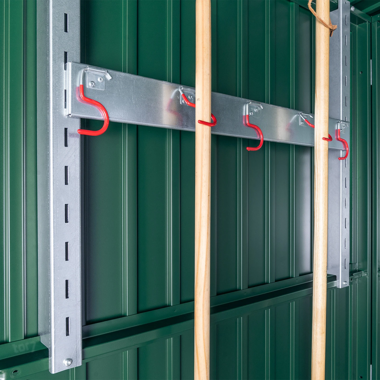 Das Hörmann Gerätehalter-Set ist Teil des umfangreichen Zubehörprogramm für Hörmann EcoStar Gerätehäuser und beinhaltet neben dem Gerätehalter für bis zu 5 Geräte auch die erforderlichen Hörmann Regalleisten in kurzer Ausführung. So kann für eine optimale und platzsparende Aufbewahrungsmöglichkeit von Gartengeräten gesorgt werden. Die Montage ist aufgrund der aufeinander abgestimmten Komponenten besonders einfach und zeitsparend. Das benötigte Montagematerial, sowie eine detaillierte Montageanleitung, liegen dem Lieferumfang bei.