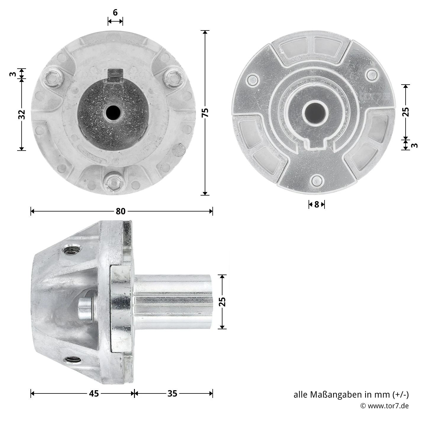 - Getriebeanbausatz für Fremdtore mit Vollwelle 1 1/4“, Ø 31,75 mm mit Nut 6,35 mm