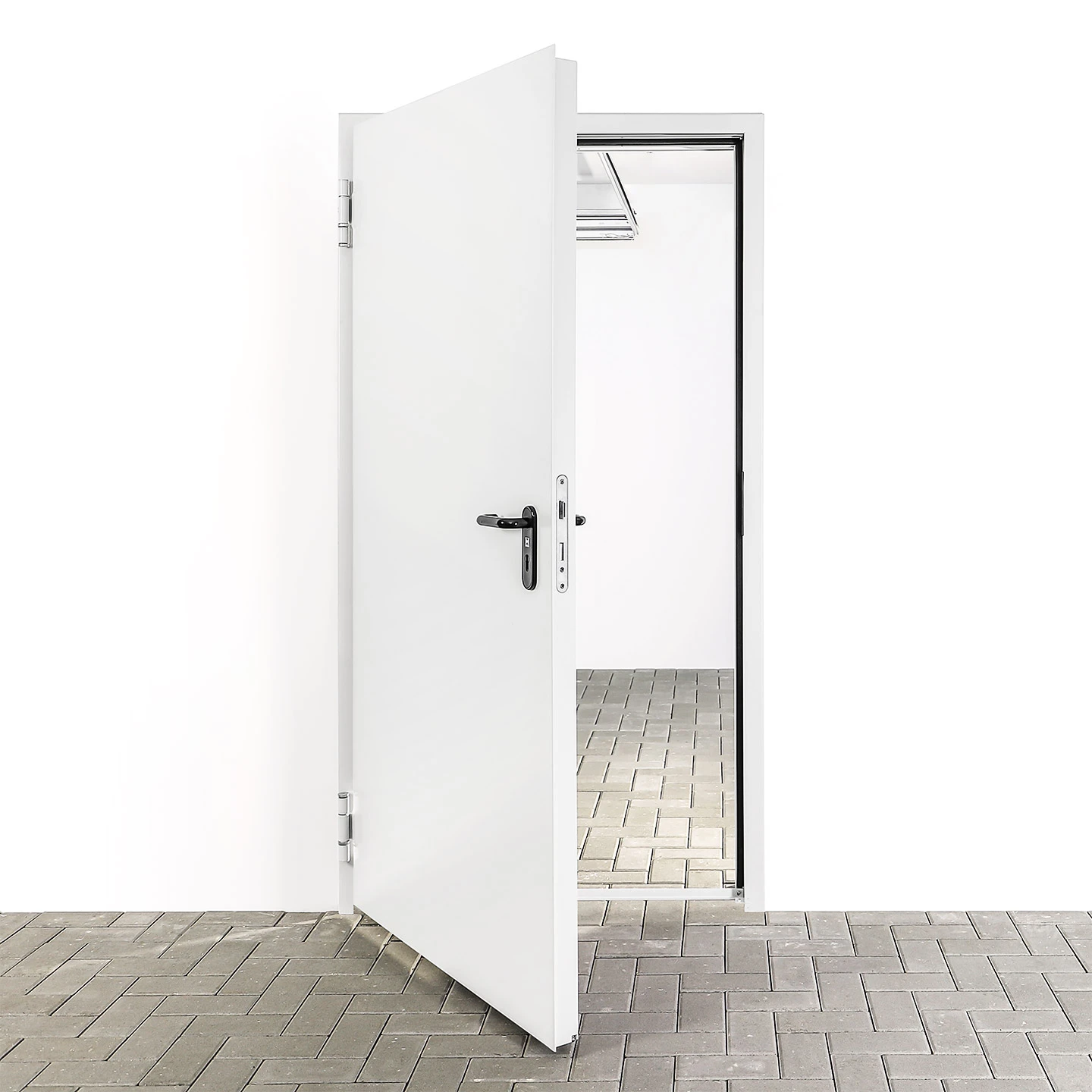 HINWEIS: Bei der hier angebotenen Stahltür handelt es sich um Lagerware. Änderungen sind daher nicht möglich. Wünschen Sie eine abweichende Türausstattung, wie beispielsweise andere Zargenausführung, rauchdichte Ausführung, Einbruchhemmung RC2/RC3, Türabschlüsse, Panikschlösser, Elektroausstattung, Verglasungen, etc., unterbreiten wir Ihnen gerne ein individuelles Angebot.