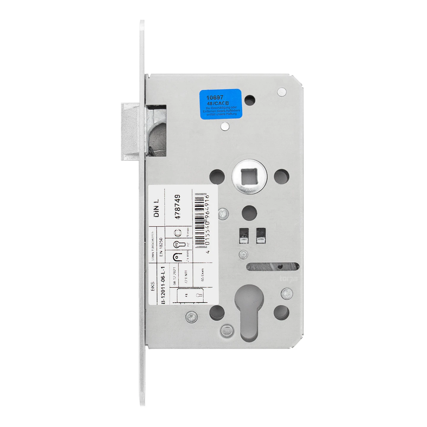 Das Hörmann Panikschloss BKS 1201 mit durchgehender Nuss und PZ-Lochung eignet sich für Hörmann Stahltüren, die nachträglich mit einem Panikschloss ausgestattet werden sollen bzw. als Ersatzteil für bereits als Paniktür fungierende Türen. Das Einsteckschloss mit der Fluchttürfunktion E entspricht hierbei der DIN EN 179 und entspricht somit den Normen, sowie gesetzlichen Regelungen zur Gebrauchstauglichkeit von Fluchttüren. Verwendet werden muss dabei zwingend eine geprüfte und zertifizierte Wechselgarnitur, um die zulassungskonforme Nutzung zu gewährleisten. Einsetzbar ist dieses Panikschloss bei Hörmann Stahltüren oder Fremdfabrikaten mit Türanschlag DIN links und Dornmaß 65 mm.