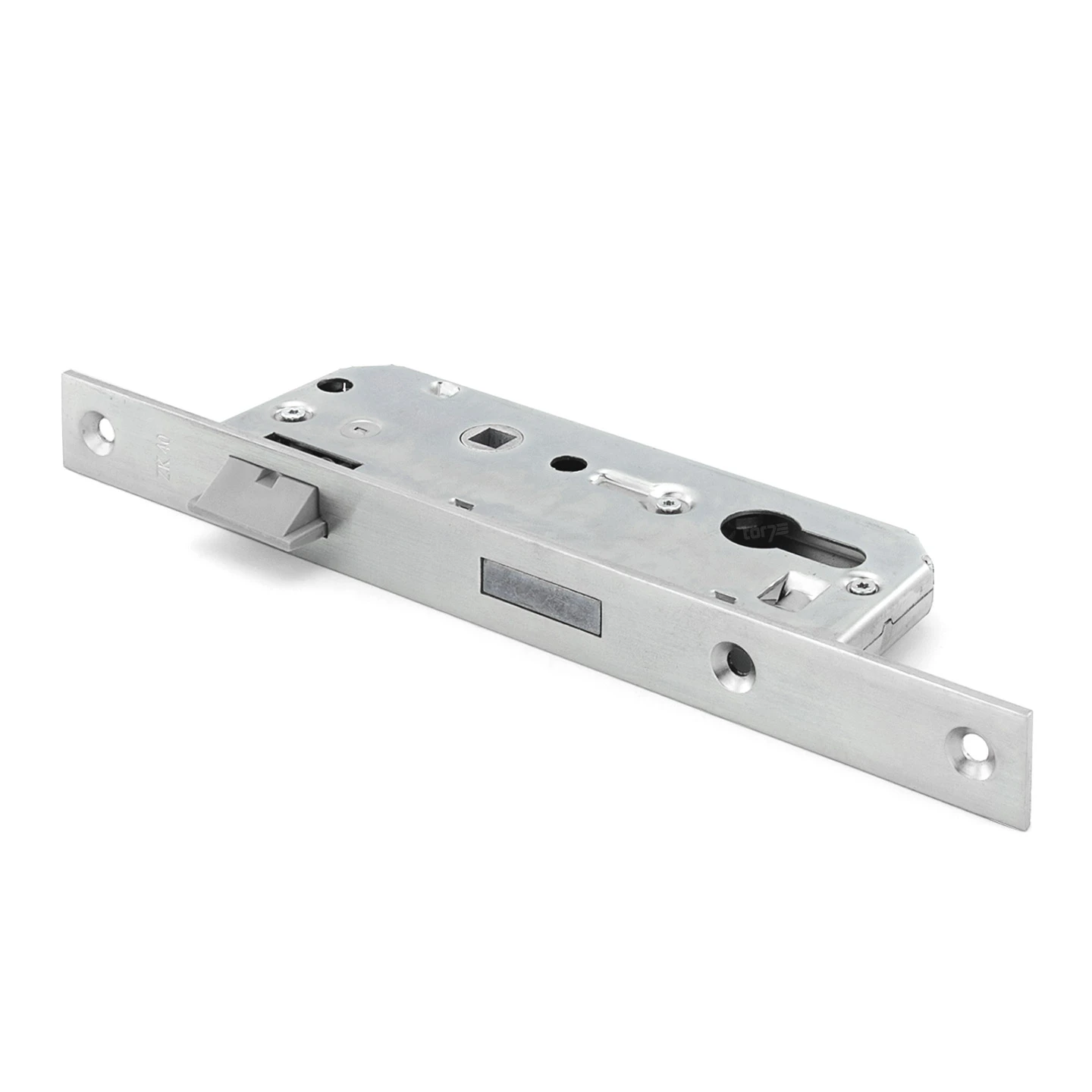 Das Hörmann Schlupftür-Schloss wird bei Hörmann Schwingtoren der Ausführung DF80, DF95 und DF98 eingesetzt, die mit einer Schlupftür mit Türanschlag DIN links ausgestattet sind. Für einen ordnungsgemäßen Verschluss und eine optimale Sicherung vor unbefugtem Zutritt ist die Schlupftür mit einem Einsteckschloss mit 2-tourig ausfahrbarem Riegel gesichert. Über die Drückernuss erfolgt zudem die Bedienung der Türfalle über den Türdrücker und somit eine komfortable Nutzung der Tür. Defekte oder Beschädigungen der vorhandenen Schlossausführungen können zu Funktionsstörungen oder einem nicht ordnungsgemäßen Türverschluss führen, weshalb ein rechtzeitiger Austausch empfehlenswert ist. Durch die PZ-Lochung ist die weitere Nutzung des vorhandenen oder die eines handelsüblichen Profilzylinders möglich. Der problemlose Austausch und eine langjährige Funktionsweise werden durch passgenaue Schlossabmessungen und hochwertige Materialien garantiert. Für rechts angeschlagene Schlupftüren erhalten Sie das Hörmann Schlupftür-Schloss DF80/95/98, PZ, DIN rechts ebenfalls in unserem Shop.