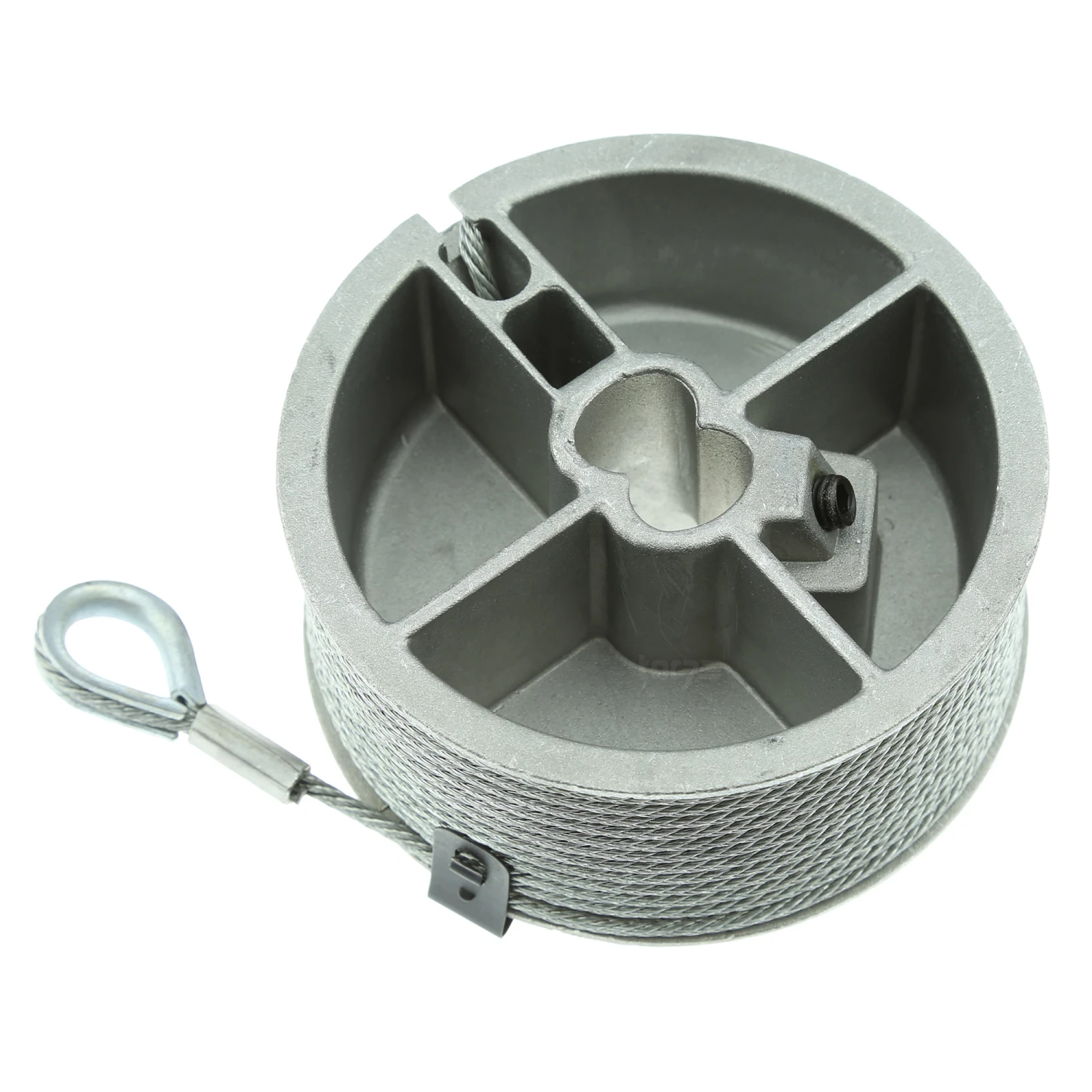 Die Hörmann Seiltrommel rechts wird bei Hörmann Sektionaltoren verwendet, die mit einem N- oder L-Beschlag ausgestattet sind. Dieses Bauteil ist an Toren der genannten Ausführung Teil des Hebe- und Senkmechanismus und trägt somit im Wesentlichen zu einem sicheren Torbetrieb bei. Die Seiltrommel wird seitlich auf die Torsionsfederwelle gesetzt, dort fixiert und die Kausche des Tragseils mit dem Aufsetzstück verbunden. Das aufgewickelte Drahtseil eignet sich für Tore mit Normal-Sturz-Beschlag, wohingegen das Drahtseil für Tore mit L-Beschlag als Ersatzteil für die erforderliche Torhöhe separat bestellt werden muss.