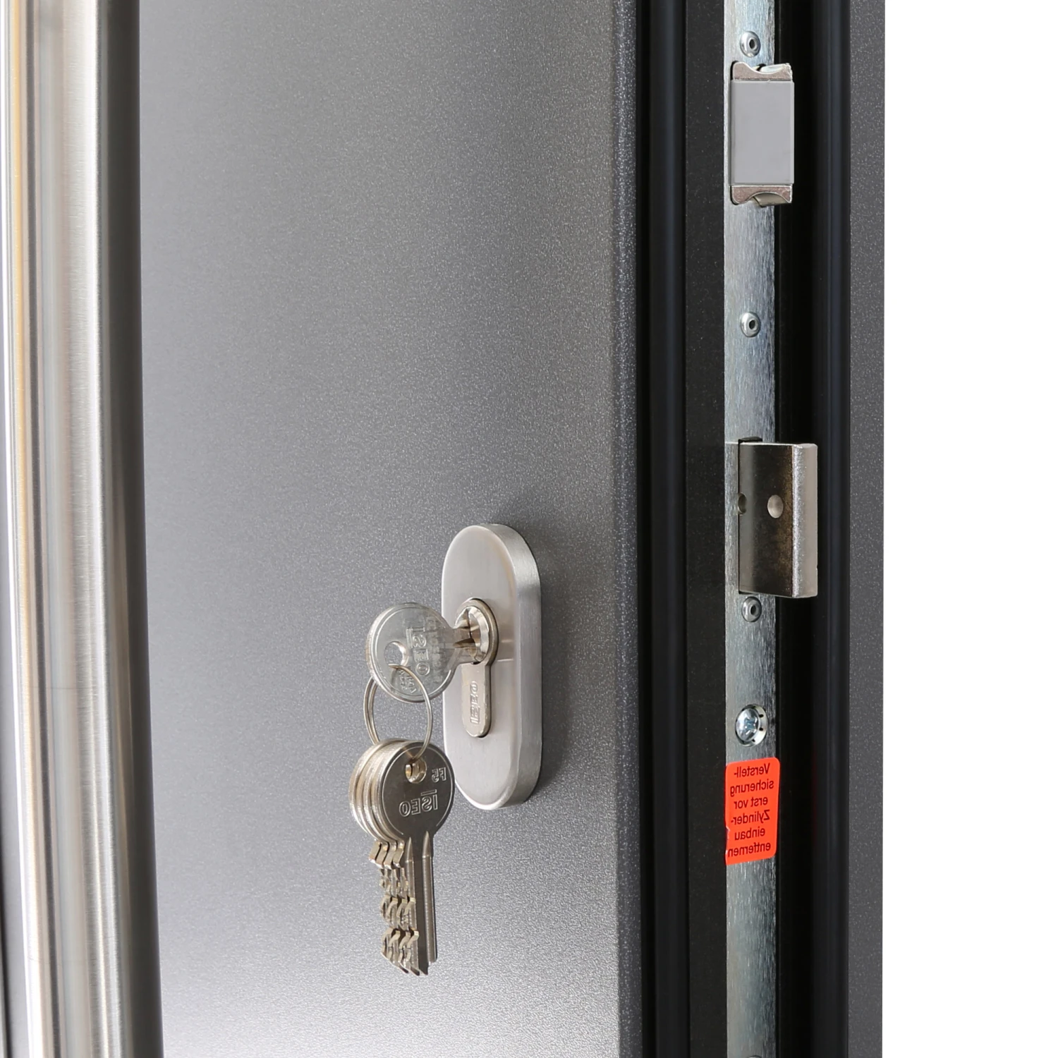 Der im Lieferumfang enthaltene Profilzylinder mit Not- und Gefahrenfunktion ermöglicht es, dass die Tür noch schließbar ist, auch wenn von innen ein Schlüssel steckt. Enthalten sind zudem 5 Schlüssel.