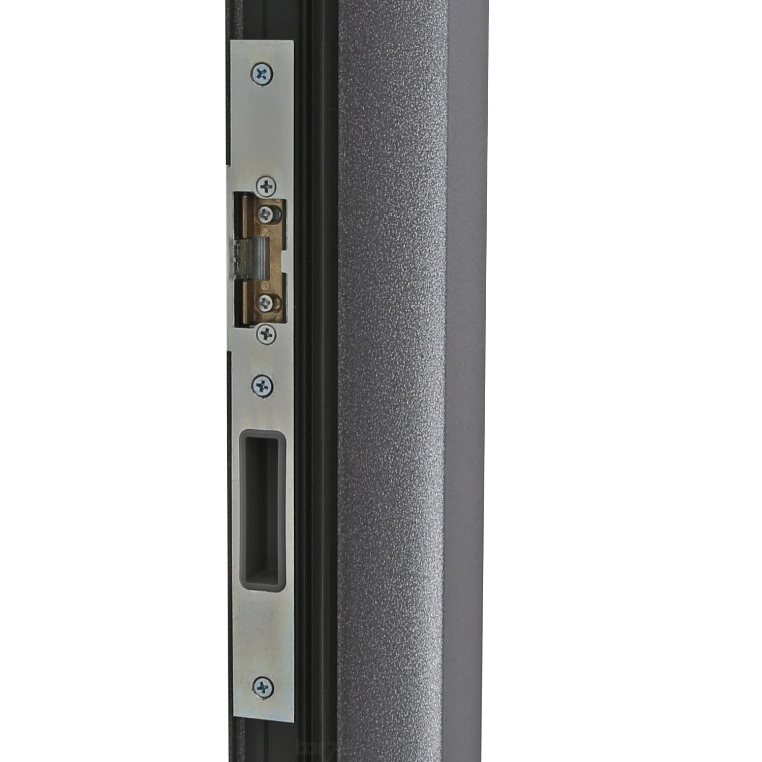 Die Hörmann Thermo65 ist serienmäßig mit einem 5-fach-Sicherheitsschloss mit Hauptschloss und 2 Bolzen sowie mit einer Schwenk-/Hakenriegel-Kombination ausgestattet. Das ermöglicht einen effektiven Schutz vor Einbruchsversuchen. Die Bandseite wird durch eine durchgängige Sicherungsleiste aus Aluminium perfekt vor Aushebelversuchen geschützt.