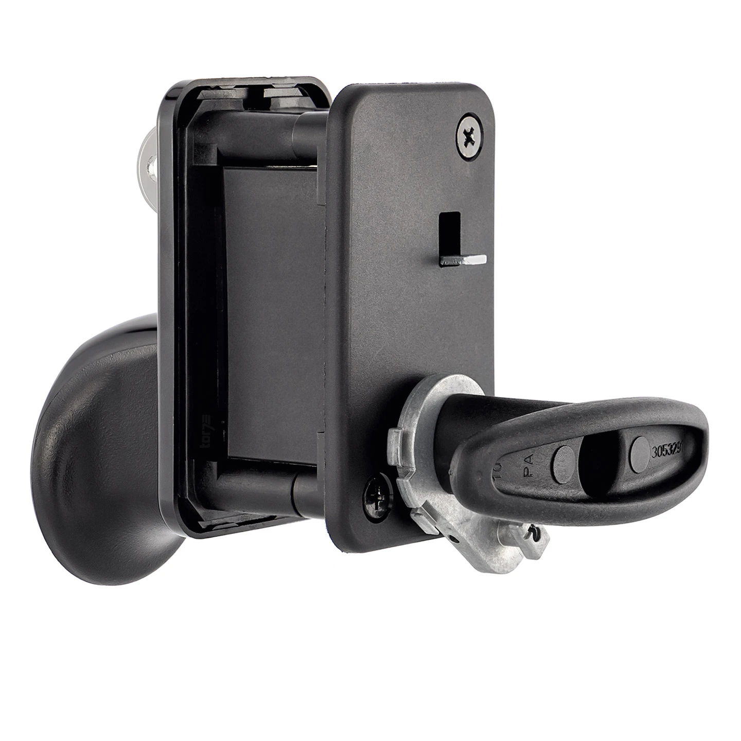 Die Torgriffgarnitur mit Schloss eignet sich für die Sektionaltore der Typen Hörmann LTE 40, EPU 40 und LPU 40. Die Griffe lassen sich angenehm leichtgängig handhaben und verursachen keine schmerzhaften Abdrücke in der Handinnenfläche. Die Verriegelung sichert das Tor dabei seitlich, am an der Zarge befestigten Verschlussbolzen, zuverlässig ab. Für handbetätigte Sektionaltore, die von außen und innen bedient werden, ist dieses Set die richtige Wahl und sorgt für die notwendige Sicherheit bei Einbruchsversuchen.