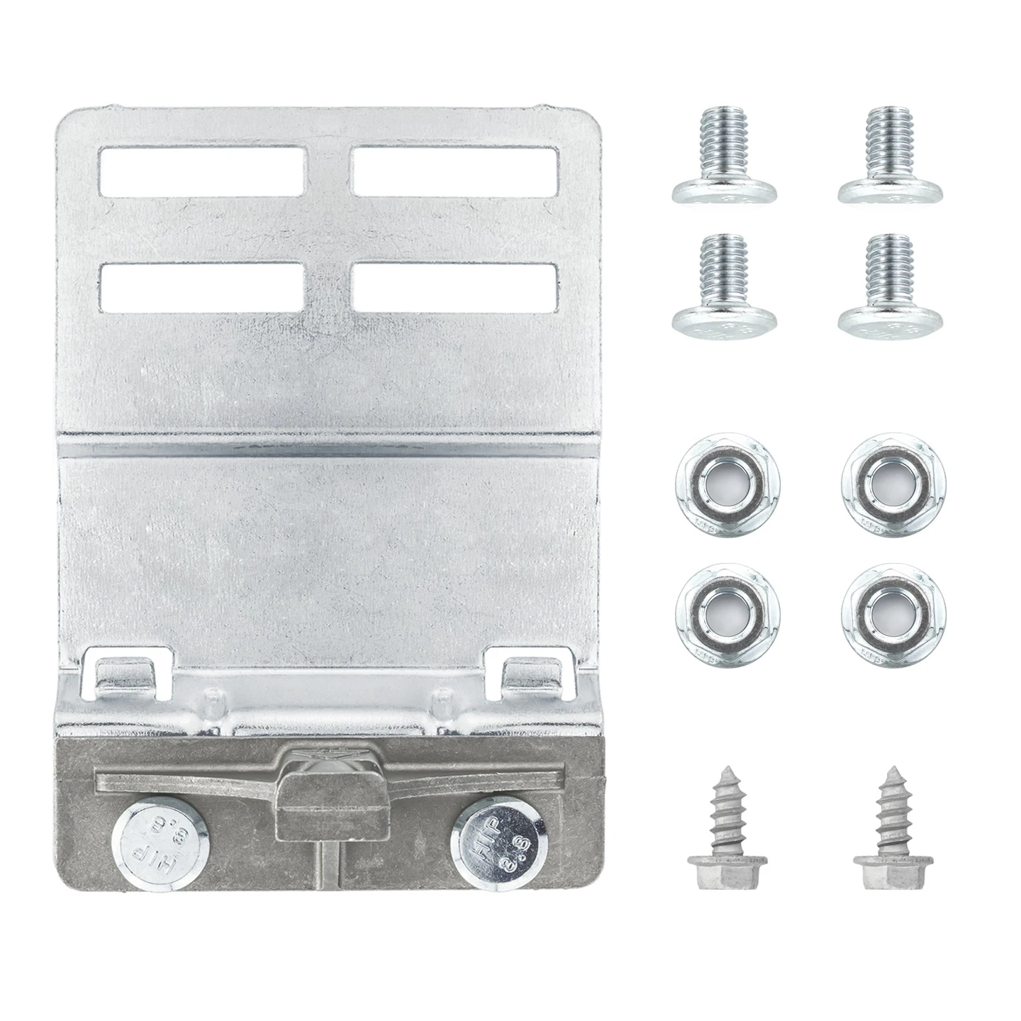 HINWEIS: Die Garnitur lässt sich auch nachträglich einfach montieren. Eine entsprechende Schablone für den bauseitigen Schlossausbruch liegt bei. Hörmann Sektionaltore der Ausführung EPU 40 mit 42/20 mm Lamelle müssen im Bereich der Verriegelung unterfüttert werden. Nutzen Sie hierfür das Hörmann Set: Unterfütterungen Rollenhalter-Verriegelung, Aufbaurahmen.