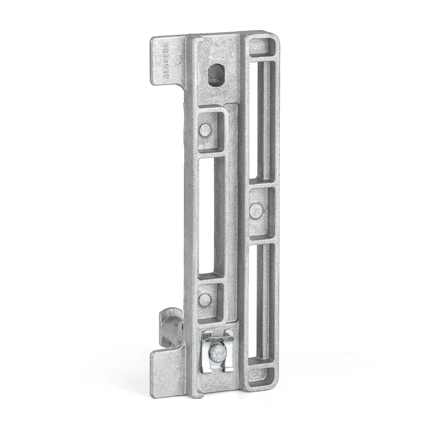 Der eigentliche Verschlussbolzen ist ca. 17 mm hoch und ragt aus einer ca. 150 mm langen Grundplatte heraus. Die gesamte Einheit ist dabei als ein Teil aus robusten Aluguss gefertigt. Je nach Tormodell und Ausführung wurde der Hörmann Verschlussbolzen, Tore mit Kassette oder ohne Sicke entweder direkt an der Torzarge oder auch über ein Tragblech montiert. Wichtig ist also zu beachten, dass beim Austausch des Bolzens entsprechende Teile weiter verwendet werden.