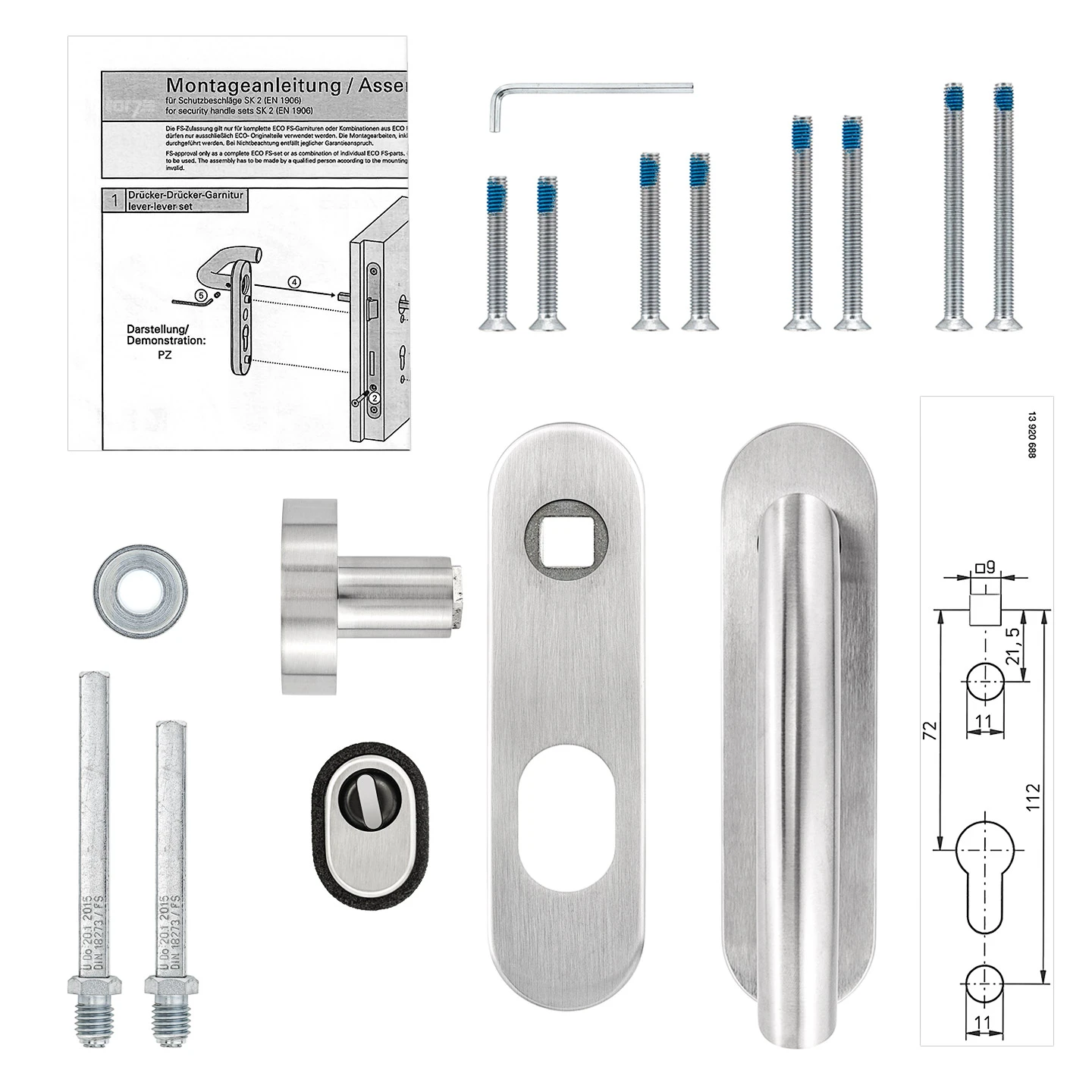 Steinau FS ES1-K Sicherheitsbeschlag, Typ D 510, Edelstahl Matt