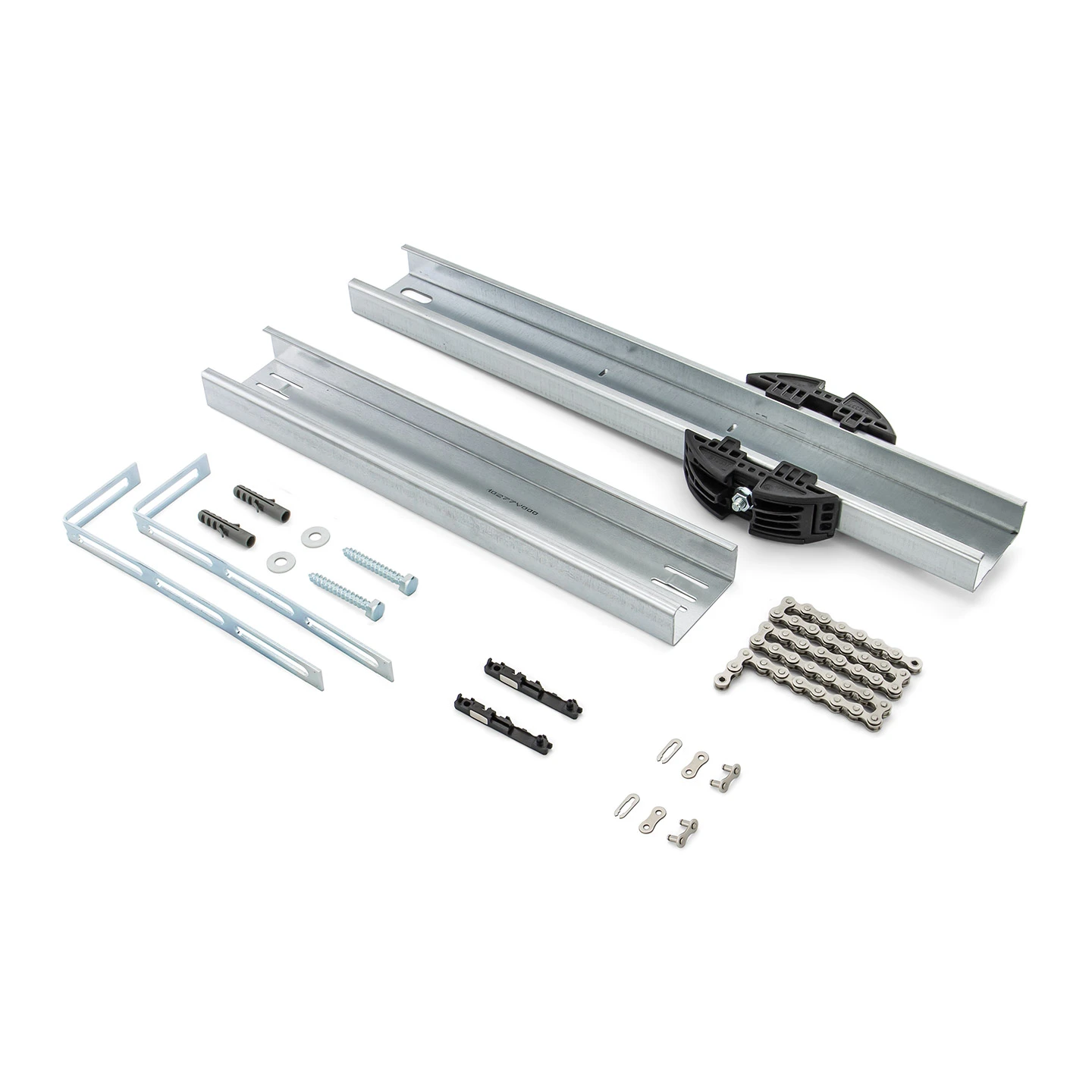 Die Teckentrup DRIVE Laufschienenverlängerung L=543 mm eignet sich für die Teckentrup Antriebssysteme DRIVE und ermöglicht die Bedienung größerer Torhöhen durch einfache Verlängerung der Führungsschiene. Hierfür wird die bestehende Schiene durch das Überschubteil fest mit der Verlängerung verbunden, die bestehende Kette verlängert und die zusätzliche Abhängung montiert. Somit ist eine Vergrößerung des bestehenden Bewegungshubs der Laufschiene und somit eine Nutzung bei höheren Sektionaltoren möglich. Die Verlängerung besteht aus verzinktem Stahlblech und ist somit gegen Korrosionsansatz geschützt. Sämtliches für die fachgerechte Montage notwendige Montagematerial, sowie eine ausführliche Montageanleitung sind im Lieferumfang bereits enthalten. Achten Sie bei der Nutzung der Verlängerung auch auf die Leistungsdaten des Antriebes, da eine vergrößerte Torhöhe auch zu einem erhöhten Kraftaufwand führt.