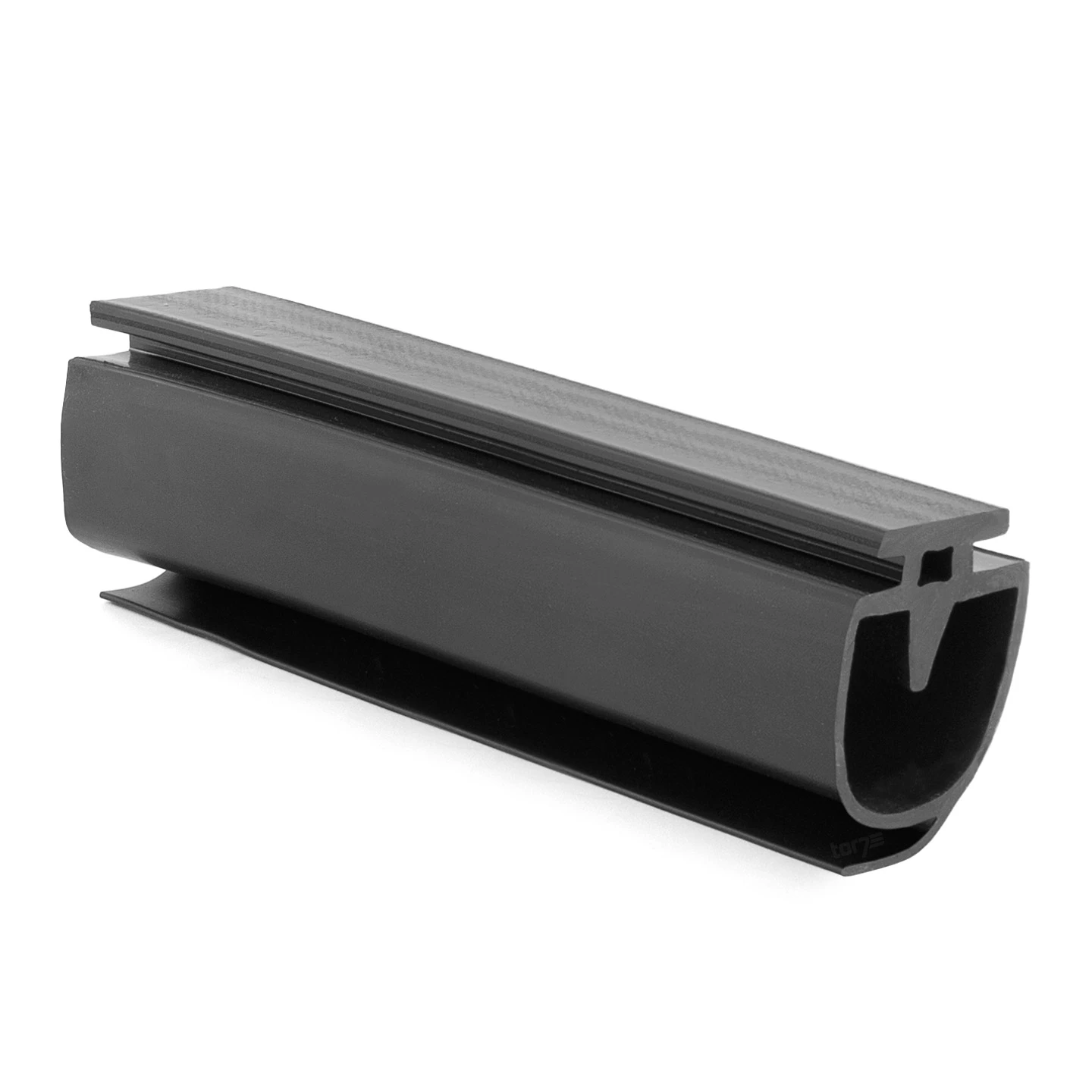 Es handelt sich bei dem Artikel hier um eine Gummidichtung, die direkt in das Bodenabschlussprofil der CarTeck-Tore eingezogen wird. Sie ist dabei zu allen vier Varianten des Abschlussprofils (0, 9, 17 u. 32 mm) kompatibel. Das Gummiprofil der Teckentrup GS-Bodendichtung mit verlängerter Dichtlippe hat ähnlich wie die meist mitgelieferte Standarddichtung eine Höhe von ca. 26 mm. Hinzu kommt eine spezielle Dichtlippe, welche dieses Profil nach unten hin auf 34 mm verlängert und für einen besseren Dichtabschluss sorgt.